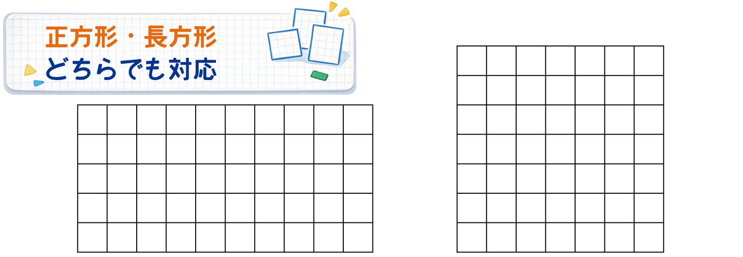 「100マスは置けないが、9×9=81マスなら設置できる」、「正方形は無理でも長方形にすれば設置できる」といったケースに最適です。