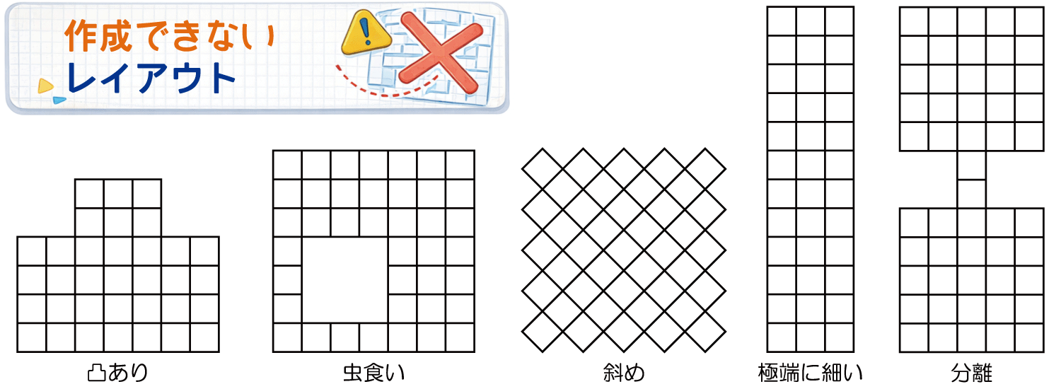 下記のような異形レイアウトや高度な指定を行うものは承れません。
